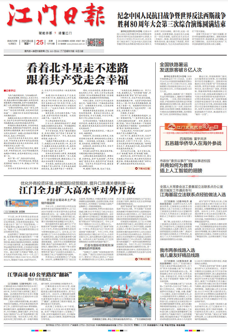 - ② 本网未注明"稿件来源:江门日报"的文/图等稿件均为转载稿,如其他媒体、网站或个人从本网下载使用,必须保留本网注明的"稿件来源",并自负版权等法律责任。