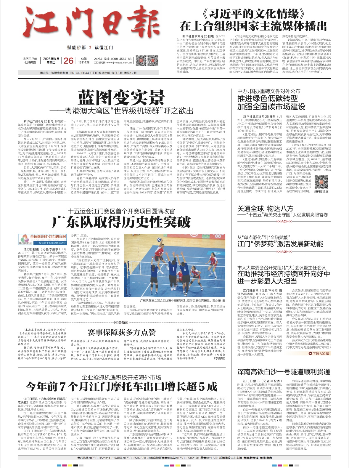 - ① 凡本网注明"稿件来源:江门日报"的所有文字、图片和音视频稿件,版权均属江门日报社所有,任何媒体、网站或个人未经本网协议授权不得复制或转载。已经本网协议授权的媒体、网站,在下载使用时必须注明"稿件来源:江门日报",违者本网将依法追究责任。