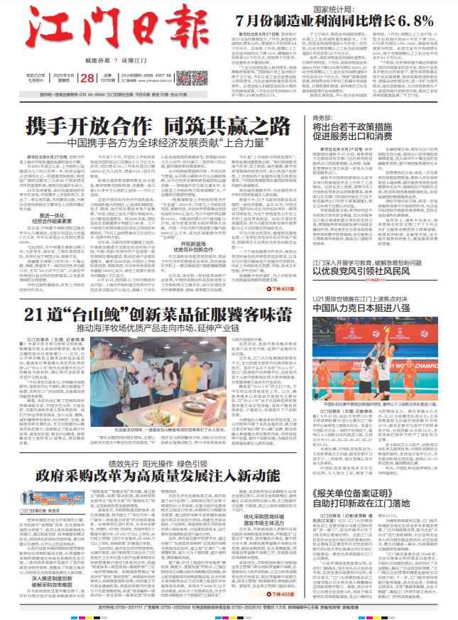 - ② 本网未注明"稿件来源:江门日报"的文/图等稿件均为转载稿,如其他媒体、网站或个人从本网下载使用,必须保留本网注明的"稿件来源",并自负版权等法律责任。