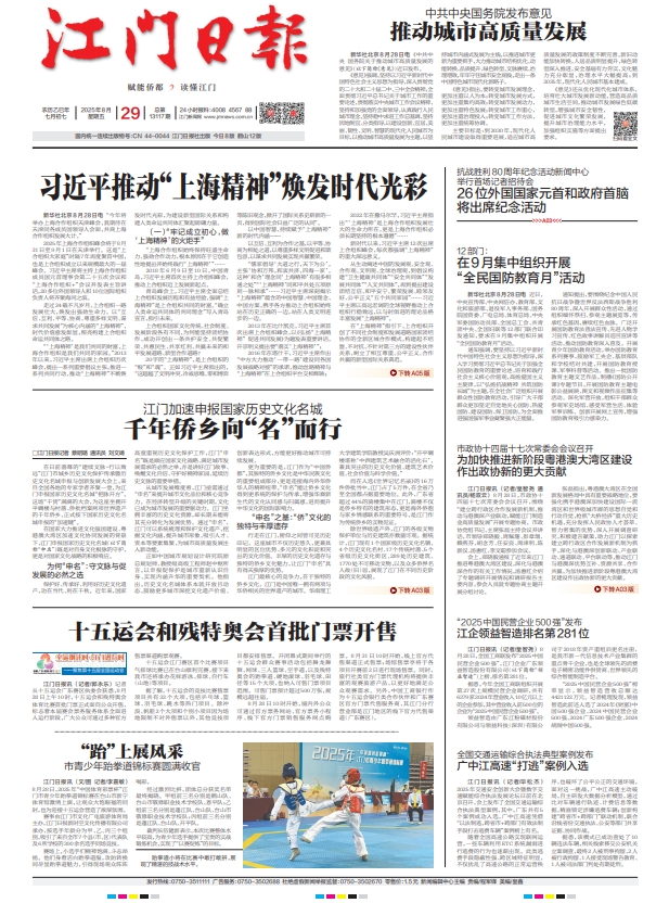 - ① 凡本网注明"稿件来源:江门日报"的所有文字、图片和音视频稿件,版权均属江门日报社所有,任何媒体、网站或个人未经本网协议授权不得复制或转载。已经本网协议授权的媒体、网站,在下载使用时必须注明"稿件来源:江门日报",违者本网将依法追究责任。