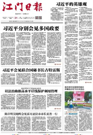 - ① 凡本网注明"稿件来源:江门日报"的所有文字、图片和音视频稿件,版权均属江门日报社所有,任何媒体、网站或个人未经本网协议授权不得复制或转载。已经本网协议授权的媒体、网站,在下载使用时必须注明"稿件来源:江门日报",违者本网将依法追究责任。
