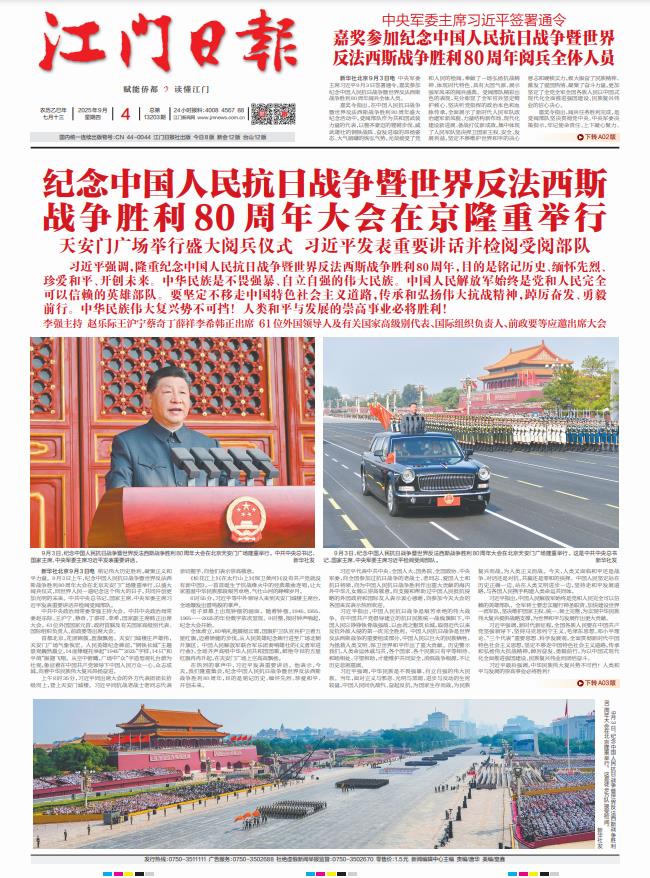 - ① 凡本网注明"稿件来源:江门日报"的所有文字、图片和音视频稿件,版权均属江门日报社所有,任何媒体、网站或个人未经本网协议授权不得复制或转载。已经本网协议授权的媒体、网站,在下载使用时必须注明"稿件来源:江门日报",违者本网将依法追究责任。