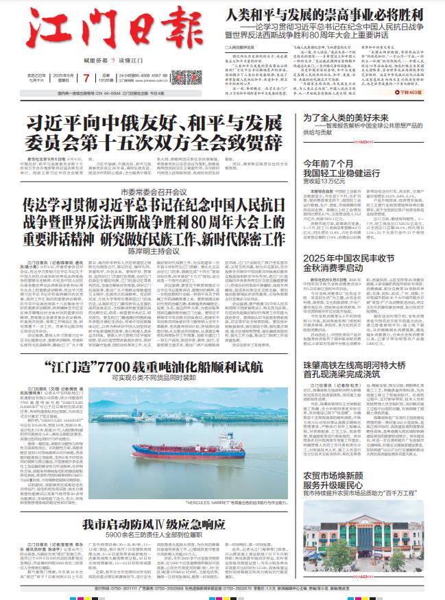 - ① 凡本网注明"稿件来源:江门日报"的所有文字、图片和音视频稿件,版权均属江门日报社所有,任何媒体、网站或个人未经本网协议授权不得复制或转载。已经本网协议授权的媒体、网站,在下载使用时必须注明"稿件来源:江门日报",违者本网将依法追究责任。