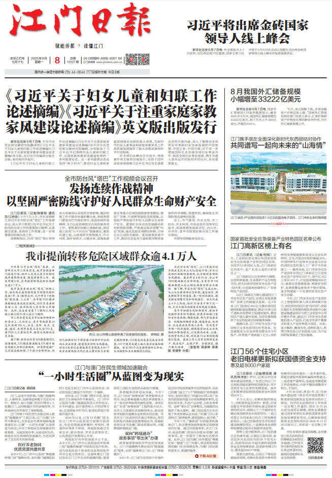 - ① 凡本网注明"稿件来源:江门日报"的所有文字、图片和音视频稿件,版权均属江门日报社所有,任何媒体、网站或个人未经本网协议授权不得复制或转载。已经本网协议授权的媒体、网站,在下载使用时必须注明"稿件来源:江门日报",违者本网将依法追究责任。