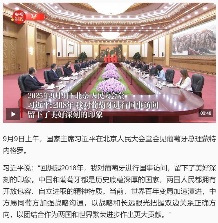 习近平:2018年 我对葡萄牙进行国事访问 留下了美好深刻的印象