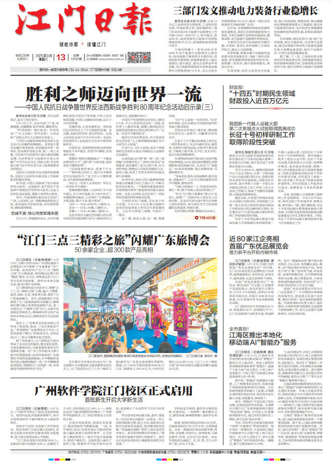 - ① 凡本网注明"稿件来源:江门日报"的所有文字、图片和音视频稿件,版权均属江门日报社所有,任何媒体、网站或个人未经本网协议授权不得复制或转载。已经本网协议授权的媒体、网站,在下载使用时必须注明"稿件来源:江门日报",违者本网将依法追究责任。