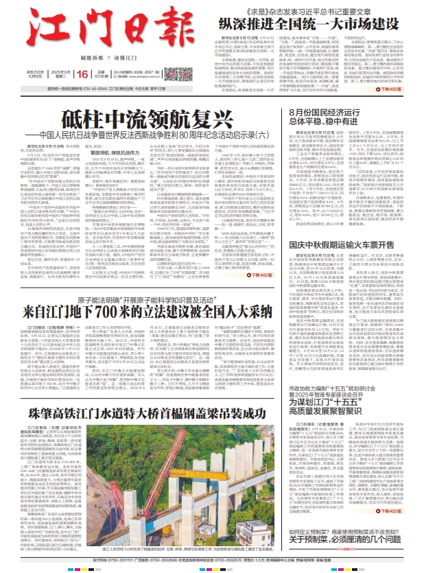 - ② 本网未注明"稿件来源:江门日报"的文/图等稿件均为转载稿,如其他媒体、网站或个人从本网下载使用,必须保留本网注明的"稿件来源",并自负版权等法律责任。
