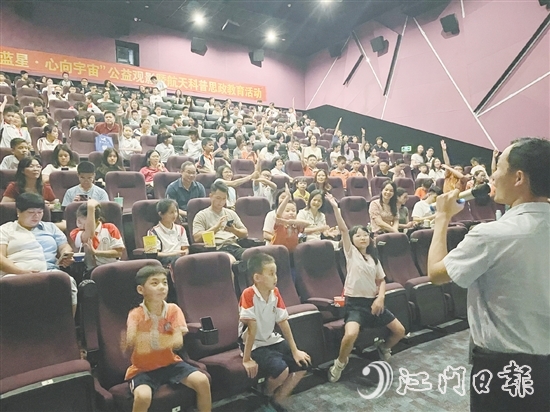 9月12日晚,恩平市举办《窗外是蓝星》公益观影暨航天科普思政教育活动,以宇宙为课堂,以星空为教材,为相关领域代表及先进模范人物带来一堂生动深刻的思政课。活动通过沉浸式体验与互动式交流,让爱国主义和崇尚科学的精神在参与者心中深深扎根。