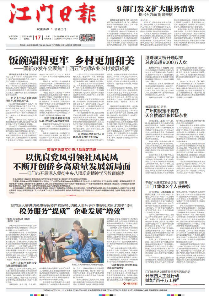 - ② 本网未注明"稿件来源:江门日报"的文/图等稿件均为转载稿,如其他媒体、网站或个人从本网下载使用,必须保留本网注明的"稿件来源",并自负版权等法律责任。