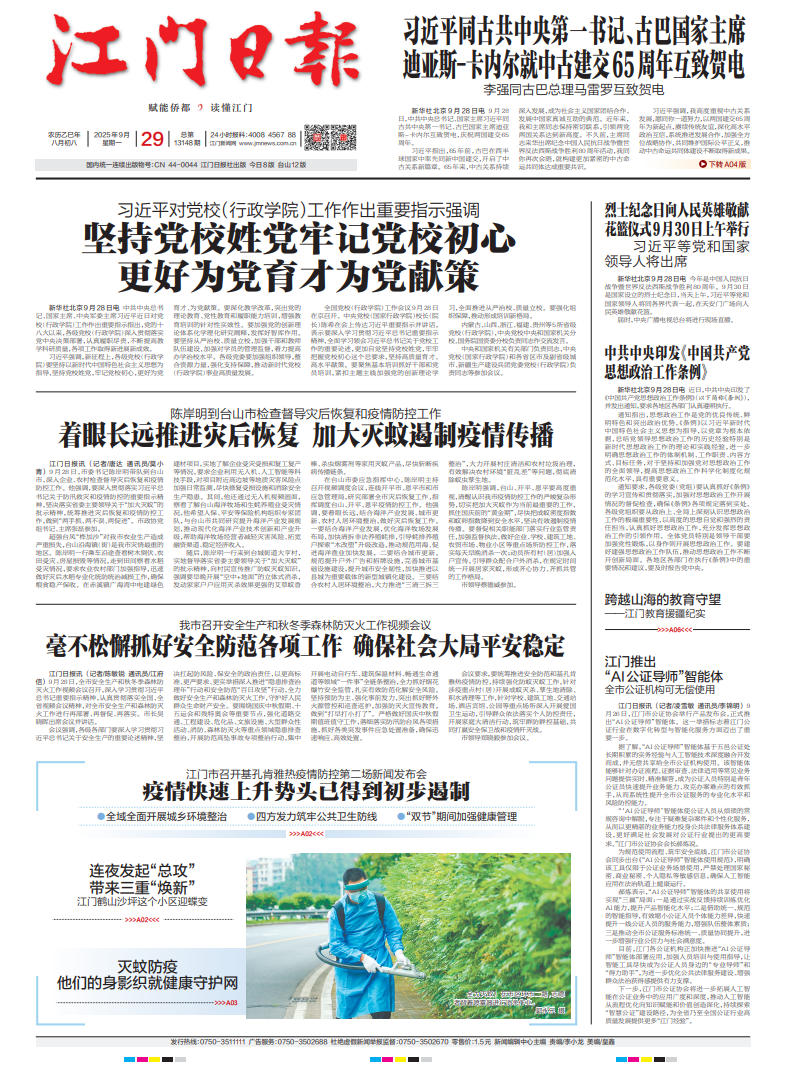 - ① 凡本网注明"稿件来源:江门日报"的所有文字、图片和音视频稿件,版权均属江门日报社所有,任何媒体、网站或个人未经本网协议授权不得复制或转载。已经本网协议授权的媒体、网站,在下载使用时必须注明"稿件来源:江门日报",违者本网将依法追究责任。