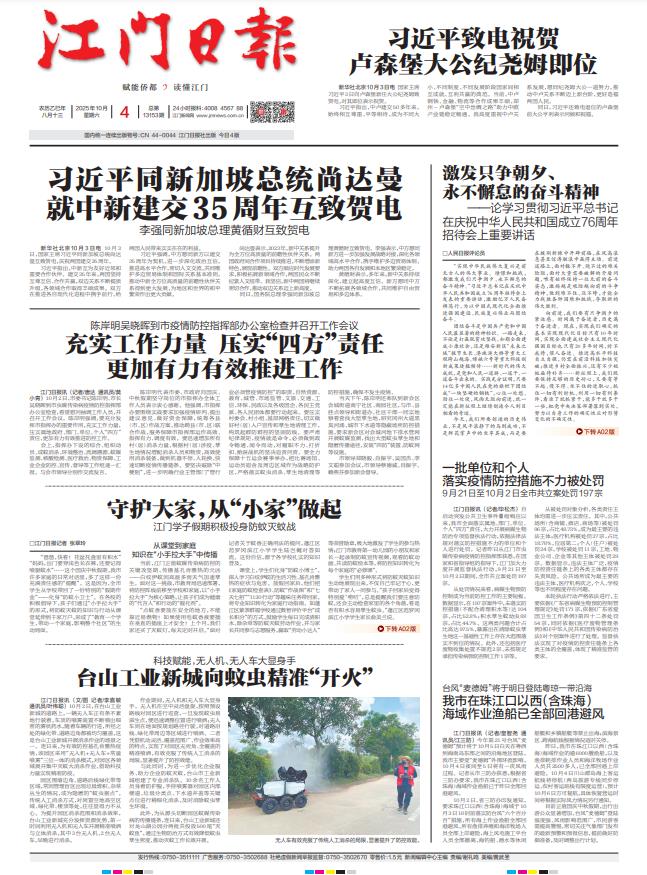 - ① 凡本网注明"稿件来源:江门日报"的所有文字、图片和音视频稿件,版权均属江门日报社所有,任何媒体、网站或个人未经本网协议授权不得复制或转载。已经本网协议授权的媒体、网站,在下载使用时必须注明"稿件来源:江门日报",违者本网将依法追究责任。
