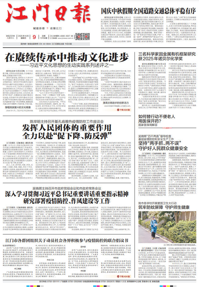 - ① 凡本网注明"稿件来源:江门日报"的所有文字、图片和音视频稿件,版权均属江门日报社所有,任何媒体、网站或个人未经本网协议授权不得复制或转载。已经本网协议授权的媒体、网站,在下载使用时必须注明"稿件来源:江门日报",违者本网将依法追究责任。