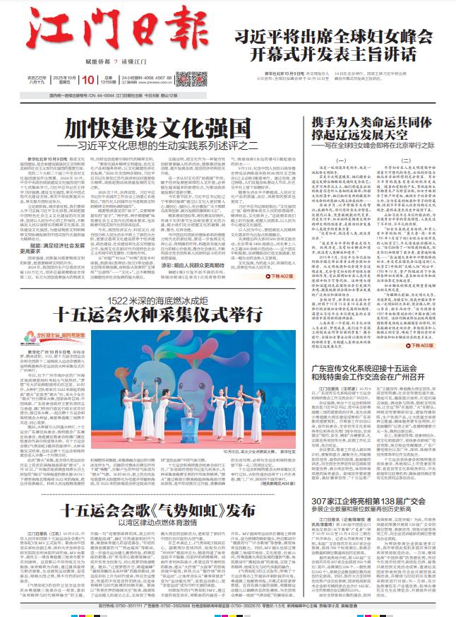 - ① 凡本网注明"稿件来源:江门日报"的所有文字、图片和音视频稿件,版权均属江门日报社所有,任何媒体、网站或个人未经本网协议授权不得复制或转载。已经本网协议授权的媒体、网站,在下载使用时必须注明"稿件来源:江门日报",违者本网将依法追究责任。