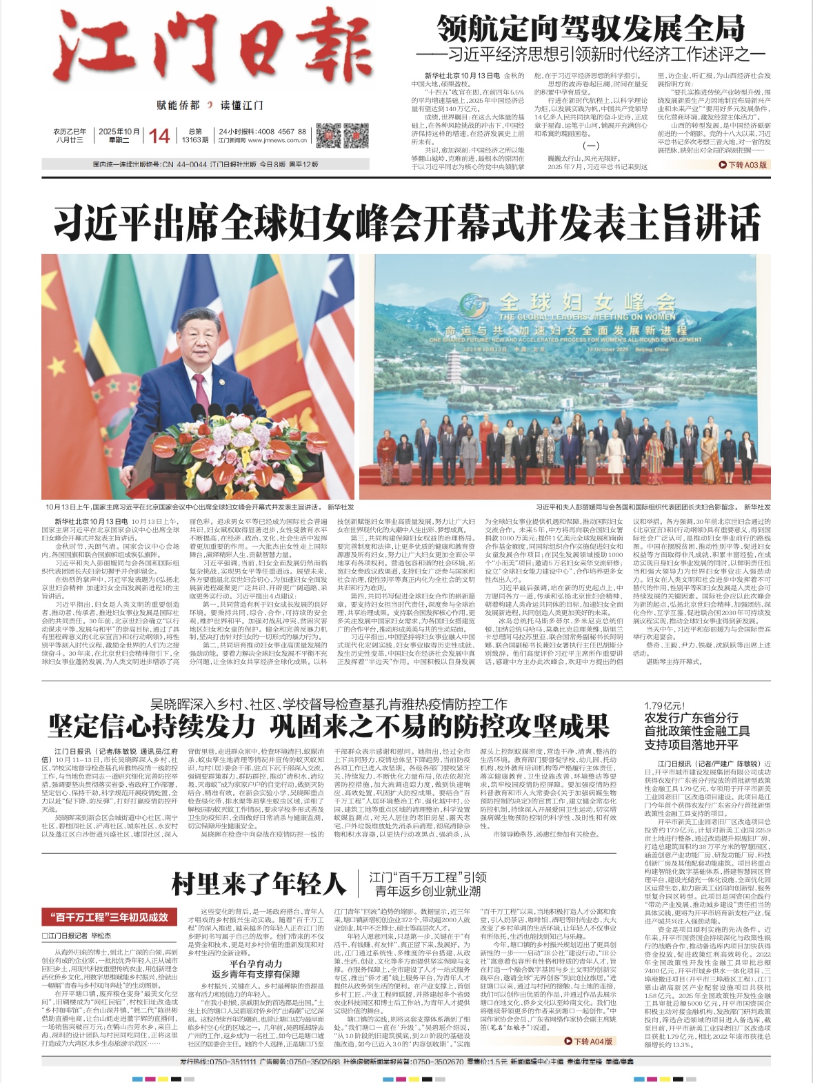 - ① 凡本网注明"稿件来源:江门日报"的所有文字、图片和音视频稿件,版权均属江门日报社所有,任何媒体、网站或个人未经本网协议授权不得复制或转载。已经本网协议授权的媒体、网站,在下载使用时必须注明"稿件来源:江门日报",违者本网将依法追究责任。