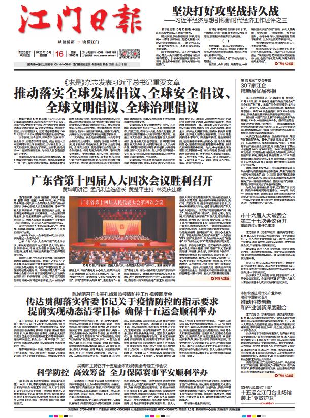 - ① 凡本网注明"稿件来源:江门日报"的所有文字、图片和音视频稿件,版权均属江门日报社所有,任何媒体、网站或个人未经本网协议授权不得复制或转载。已经本网协议授权的媒体、网站,在下载使用时必须注明"稿件来源:江门日报",违者本网将依法追究责任。