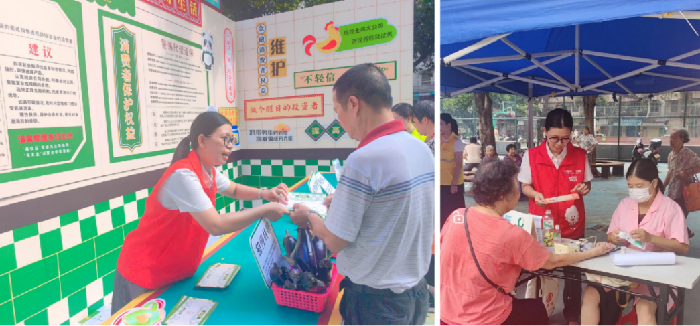 活动巧妙地设置了极具岭南生活气息的“稳阵蔬果档”快闪店,该区域以色彩明快的仿真蔬果和创意展板营造出浓厚的集市氛围,集中展示了“适当性管理”、“警惕‘代理退保’陷阱”、“防范电信网络诈骗”等核心金融知识。聚焦老年客户日常生活中高频遇到的金融场景和风险点,巧妙借用各类蔬果的谐音梗——“茄慢转账”“姜诈识破”“芹止贪心”,以通俗易懂的方式提醒老年人谨防金融风险,让严肃的风险提示变得亲切可感、过目难忘。