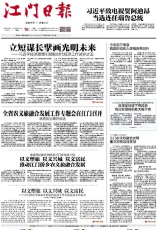 - ① 凡本网注明"稿件来源:江门日报"的所有文字、图片和音视频稿件,版权均属江门日报社所有,任何媒体、网站或个人未经本网协议授权不得复制或转载。已经本网协议授权的媒体、网站,在下载使用时必须注明"稿件来源:江门日报",违者本网将依法追究责任。