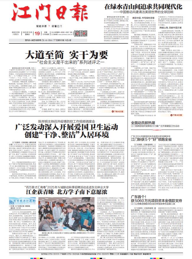 - ② 本网未注明"稿件来源:江门日报"的文/图等稿件均为转载稿,如其他媒体、网站或个人从本网下载使用,必须保留本网注明的"稿件来源",并自负版权等法律责任。