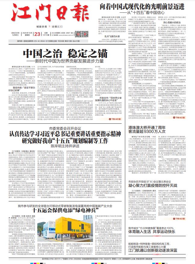 - ① 凡本网注明"稿件来源:江门日报"的所有文字、图片和音视频稿件,版权均属江门日报社所有,任何媒体、网站或个人未经本网协议授权不得复制或转载。已经本网协议授权的媒体、网站,在下载使用时必须注明"稿件来源:江门日报",违者本网将依法追究责任。