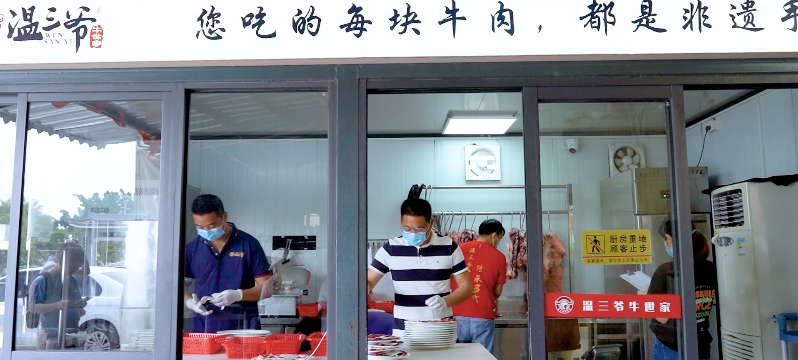 1987年,温家人在龙口镇创立“霄乡饭店”,从一间飘着牛肉香气的乡土餐馆,到如今鹤山市旺牛世家农业科技有限公司成为省级农业龙头企业,温三爷牛世家用三十余年的光阴,将“一生只为做好一头牛”的信念融入血脉。温伟文作为第四代传人,已经接过时代的接力棒,不仅传承了家族的手艺,更赋予了“温三爷”新的生命力。