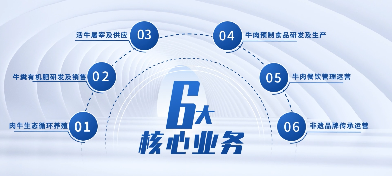 在龙口镇的引领下,旺牛世家积极响应号召,在“双百行动”产学研平台上,与广东省科学院共建肉牛养殖创新示范基地,从传统养殖模式转型为标准化生产体系,确保每一头牛都健康优质。作为龙口镇核心企业,温三爷牛世家以“牛”为媒,六大核心业务贯穿了肉牛产业的上、中、下游,通过旺牛世家、甘牛、兴牛、温三爷的全链条产业发展,实现了一二三产深度融合。从生态养殖到有机肥研发,从屠宰供应到预制食品生产,再到餐饮管理与文化传承,温三爷牛世家将“牛经济”做到了极致,让“鹤山牛”的金字招牌更加闪亮。