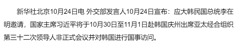 习近平将赴韩国出席亚太经合组织第三十二次领导人非正式会议并对韩国进行国事访问