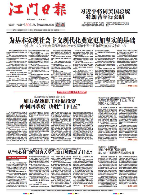 - ① 凡本网注明"稿件来源:江门日报"的所有文字、图片和音视频稿件,版权均属江门日报社所有,任何媒体、网站或个人未经本网协议授权不得复制或转载。已经本网协议授权的媒体、网站,在下载使用时必须注明"稿件来源:江门日报",违者本网将依法追究责任。