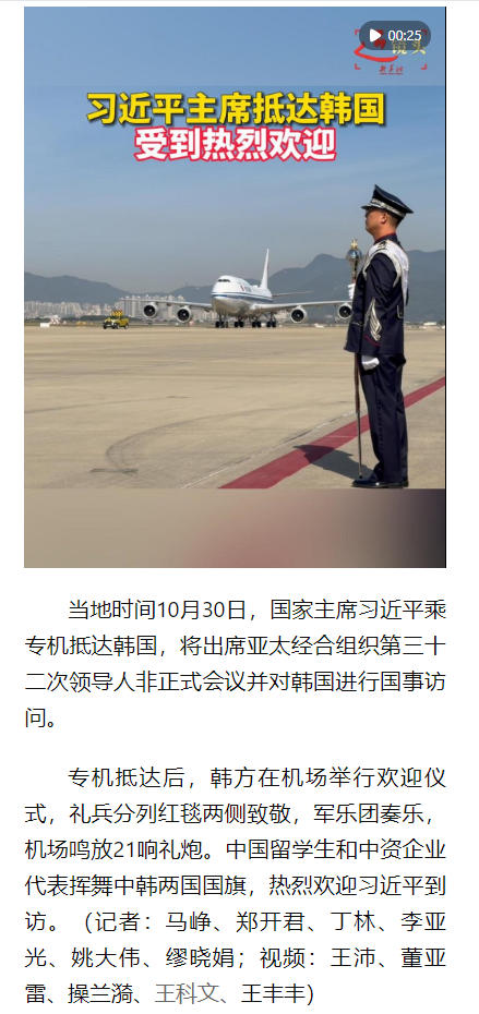 近镜头|习近平抵达韩国受到热烈欢迎