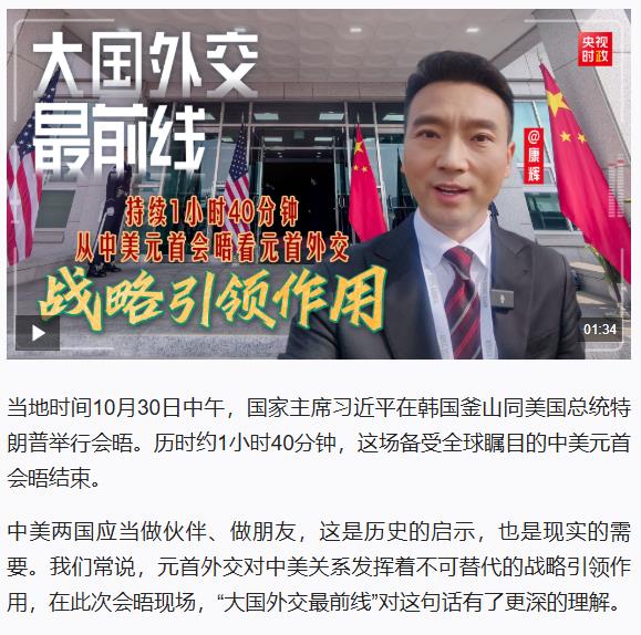 大国外交最前线丨持续1小时40分钟,从中美元首会晤看元首外交战略引领作用