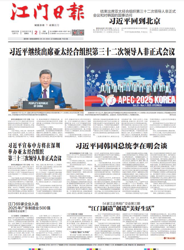 - ① 凡本网注明"稿件来源:江门日报"的所有文字、图片和音视频稿件,版权均属江门日报社所有,任何媒体、网站或个人未经本网协议授权不得复制或转载。已经本网协议授权的媒体、网站,在下载使用时必须注明"稿件来源:江门日报",违者本网将依法追究责任。