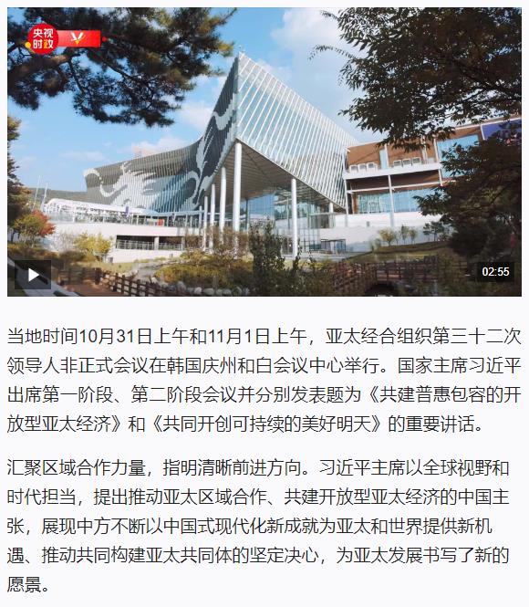 时政微纪录丨习主席的韩国APEC时间:书写亚太发展新愿景