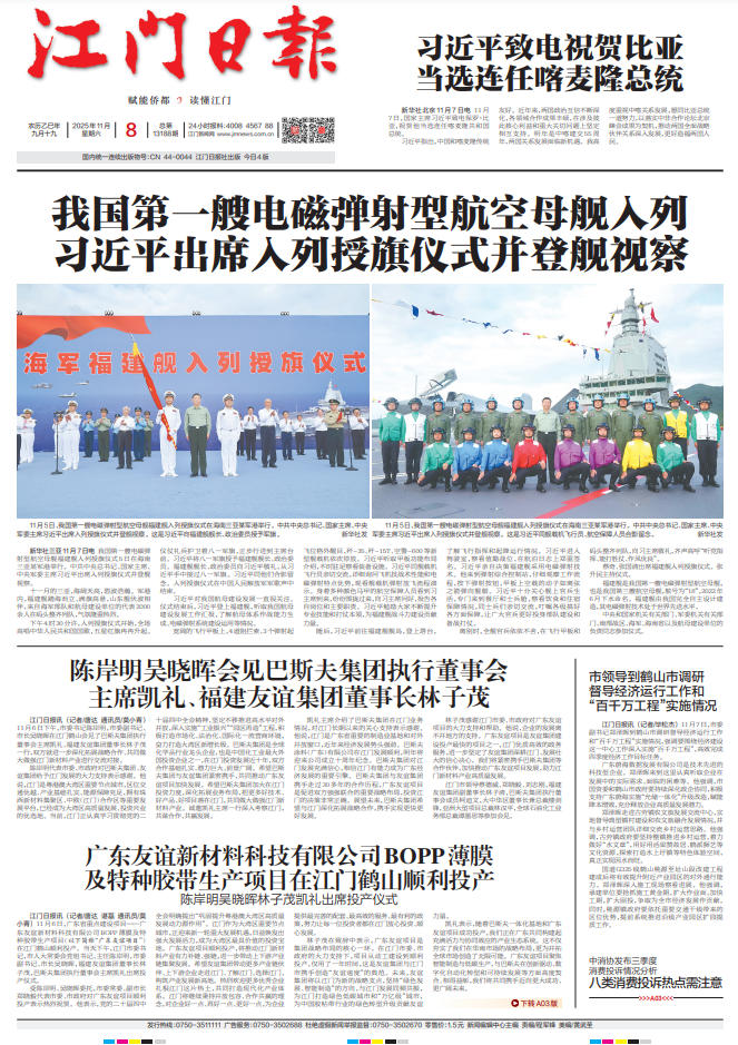 - ① 凡本网注明"稿件来源:江门日报"的所有文字、图片和音视频稿件,版权均属江门日报社所有,任何媒体、网站或个人未经本网协议授权不得复制或转载。已经本网协议授权的媒体、网站,在下载使用时必须注明"稿件来源:江门日报",违者本网将依法追究责任。