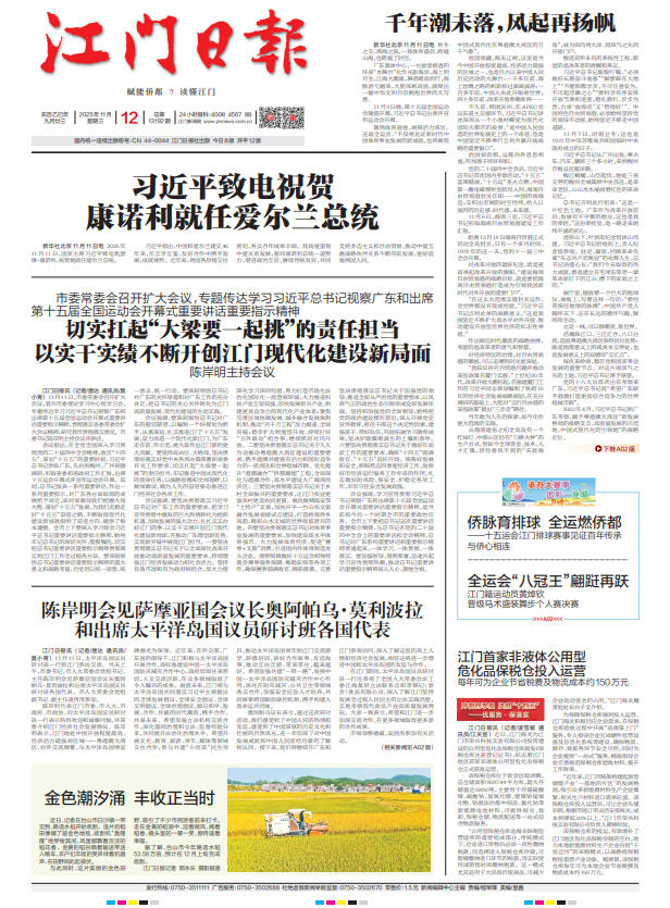 - ② 本网未注明"稿件来源:江门日报"的文/图等稿件均为转载稿,如其他媒体、网站或个人从本网下载使用,必须保留本网注明的"稿件来源",并自负版权等法律责任。