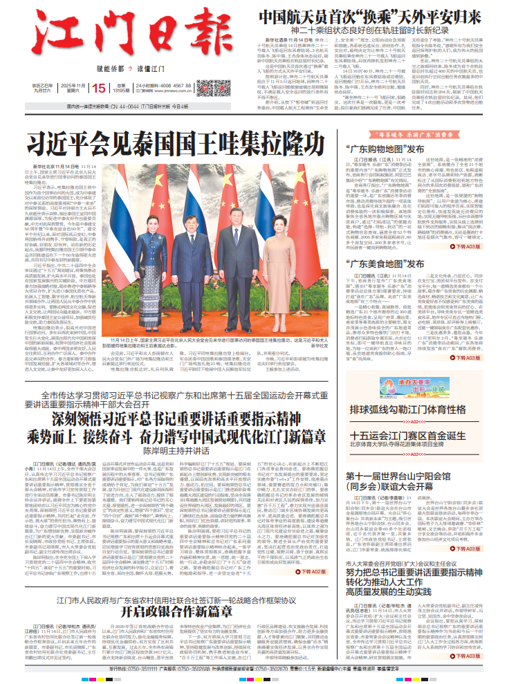 - ① 凡本网注明"稿件来源:江门日报"的所有文字、图片和音视频稿件,版权均属江门日报社所有,任何媒体、网站或个人未经本网协议授权不得复制或转载。已经本网协议授权的媒体、网站,在下载使用时必须注明"稿件来源:江门日报",违者本网将依法追究责任。