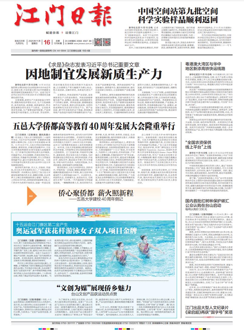 - ① 凡本网注明"稿件来源:江门日报"的所有文字、图片和音视频稿件,版权均属江门日报社所有,任何媒体、网站或个人未经本网协议授权不得复制或转载。已经本网协议授权的媒体、网站,在下载使用时必须注明"稿件来源:江门日报",违者本网将依法追究责任。