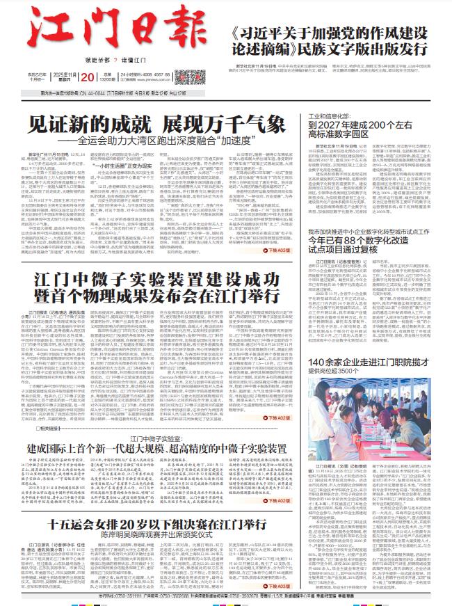 - ① 凡本网注明"稿件来源:江门日报"的所有文字、图片和音视频稿件,版权均属江门日报社所有,任何媒体、网站或个人未经本网协议授权不得复制或转载。已经本网协议授权的媒体、网站,在下载使用时必须注明"稿件来源:江门日报",违者本网将依法追究责任。