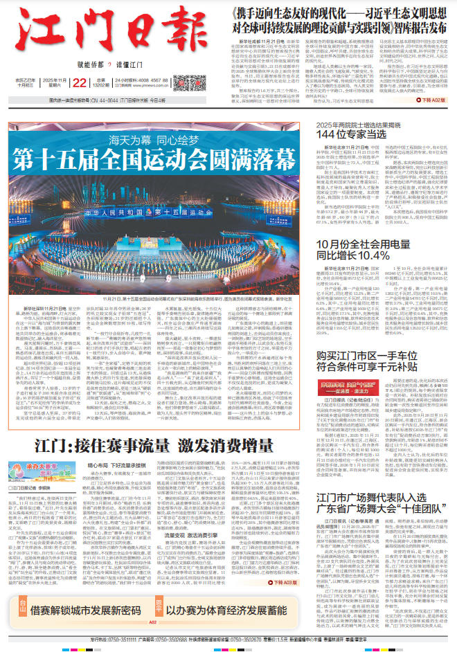 - ② 本网未注明"稿件来源:江门日报"的文/图等稿件均为转载稿,如其他媒体、网站或个人从本网下载使用,必须保留本网注明的"稿件来源",并自负版权等法律责任。