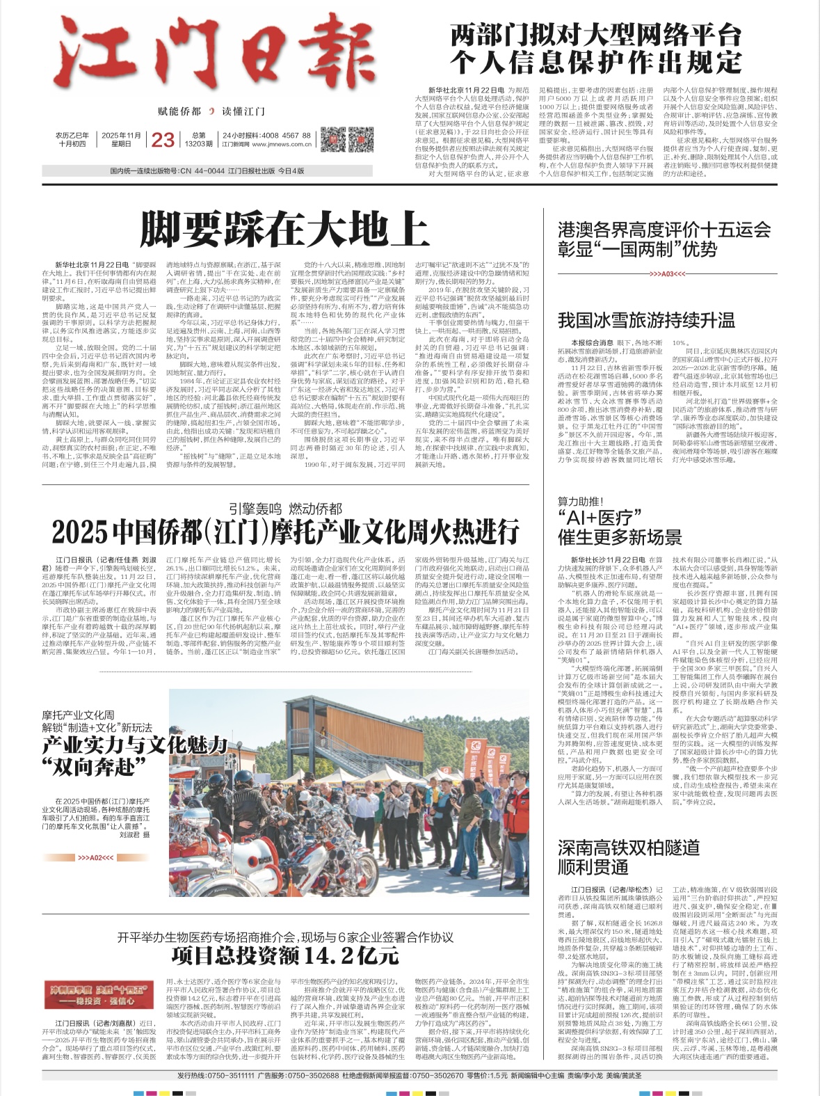 - ② 本网未注明"稿件来源:江门日报"的文/图等稿件均为转载稿,如其他媒体、网站或个人从本网下载使用,必须保留本网注明的"稿件来源",并自负版权等法律责任。