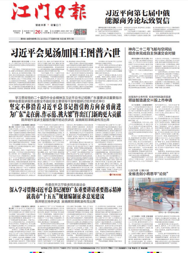 - ① 凡本网注明"稿件来源:江门日报"的所有文字、图片和音视频稿件,版权均属江门日报社所有,任何媒体、网站或个人未经本网协议授权不得复制或转载。已经本网协议授权的媒体、网站,在下载使用时必须注明"稿件来源:江门日报",违者本网将依法追究责任。