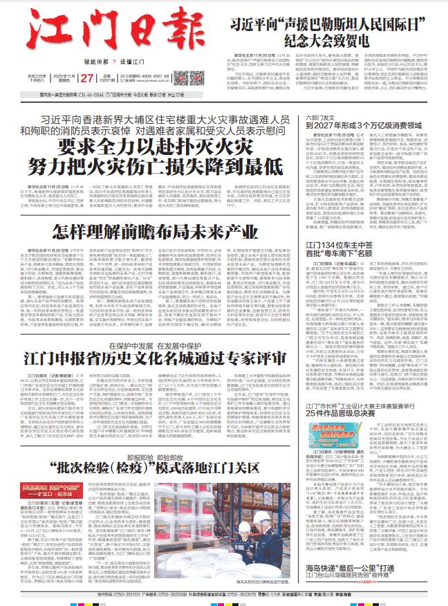 - ① 凡本网注明"稿件来源:江门日报"的所有文字、图片和音视频稿件,版权均属江门日报社所有,任何媒体、网站或个人未经本网协议授权不得复制或转载。已经本网协议授权的媒体、网站,在下载使用时必须注明"稿件来源:江门日报",违者本网将依法追究责任。