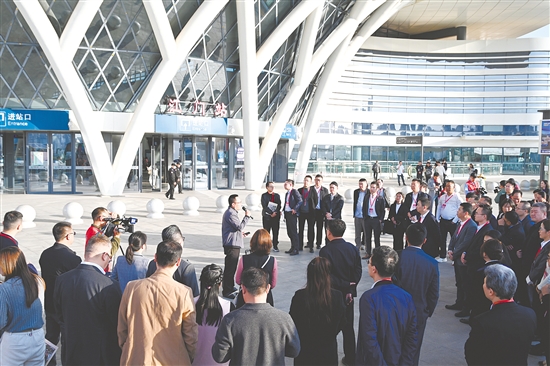 与会嘉宾实地考察新会枢纽新城的相关配套设施。