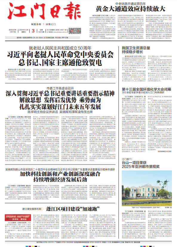 - ② 本网未注明"稿件来源:江门日报"的文/图等稿件均为转载稿,如其他媒体、网站或个人从本网下载使用,必须保留本网注明的"稿件来源",并自负版权等法律责任。