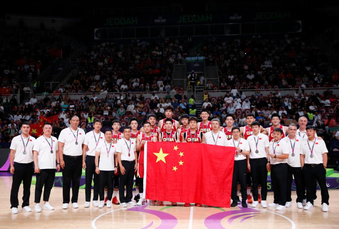 8月17日,在2025国际篮联亚洲杯决赛中,中国队获得亚军。图为中国队在颁奖仪式后合影。新华社记者 王东震 摄