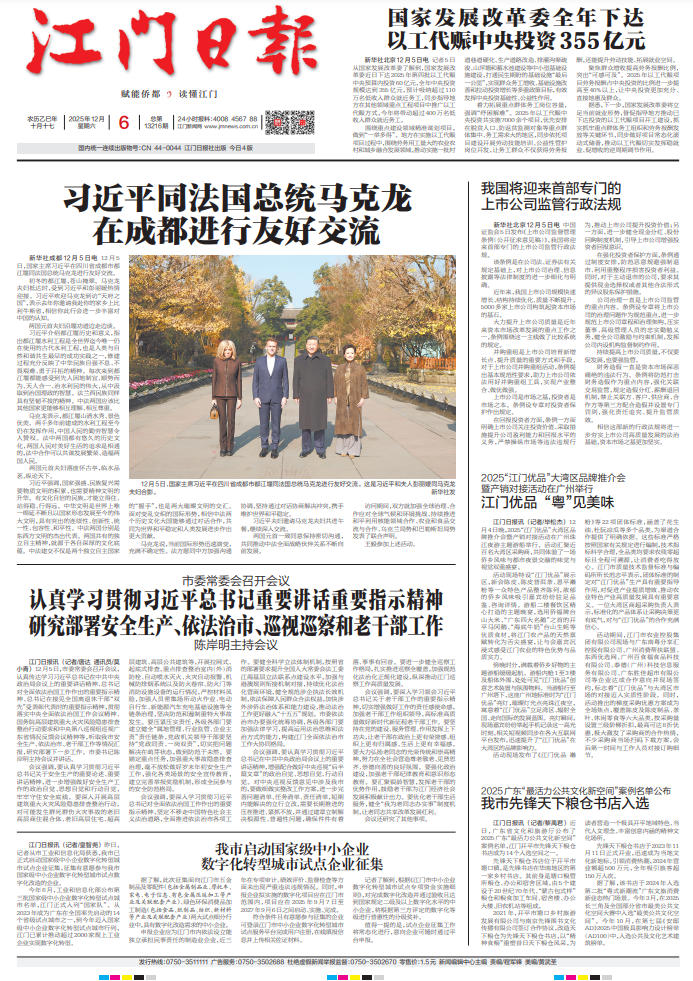 - ② 本网未注明"稿件来源:江门日报"的文/图等稿件均为转载稿,如其他媒体、网站或个人从本网下载使用,必须保留本网注明的"稿件来源",并自负版权等法律责任。