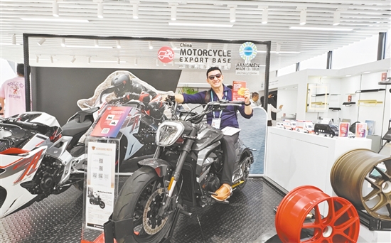“江门造”摩托车是广交会上的“常客”,深受外商青睐。