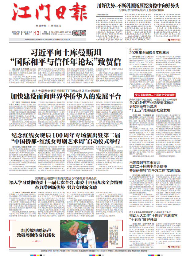 - ② 本网未注明"稿件来源:江门日报"的文/图等稿件均为转载稿,如其他媒体、网站或个人从本网下载使用,必须保留本网注明的"稿件来源",并自负版权等法律责任。