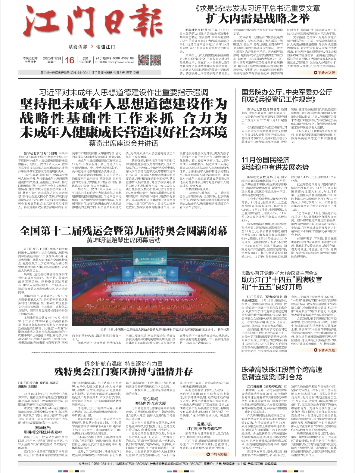 - ② 本网未注明"稿件来源:江门日报"的文/图等稿件均为转载稿,如其他媒体、网站或个人从本网下载使用,必须保留本网注明的"稿件来源",并自负版权等法律责任。