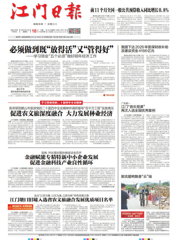 - ② 本网未注明"稿件来源:江门日报"的文/图等稿件均为转载稿,如其他媒体、网站或个人从本网下载使用,必须保留本网注明的"稿件来源",并自负版权等法律责任。