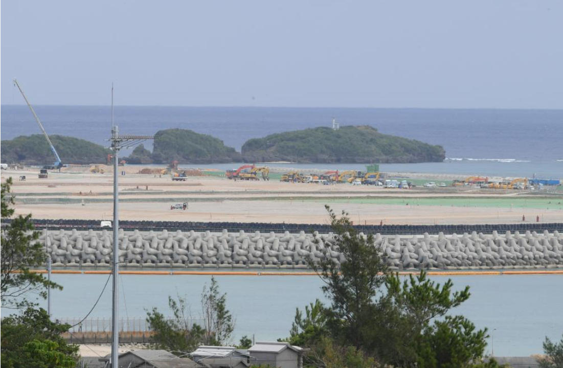 这是2023年11月25日在日本冲绳县名护市拍摄的驻日美军边野古基地施工现场。新华社记者 冯武勇 摄