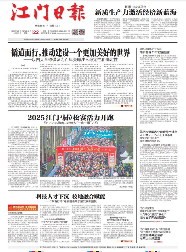 - ② 本网未注明"稿件来源:江门日报"的文/图等稿件均为转载稿,如其他媒体、网站或个人从本网下载使用,必须保留本网注明的"稿件来源",并自负版权等法律责任。